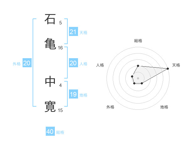 石亀 中寛さんの天格は21画の5点!