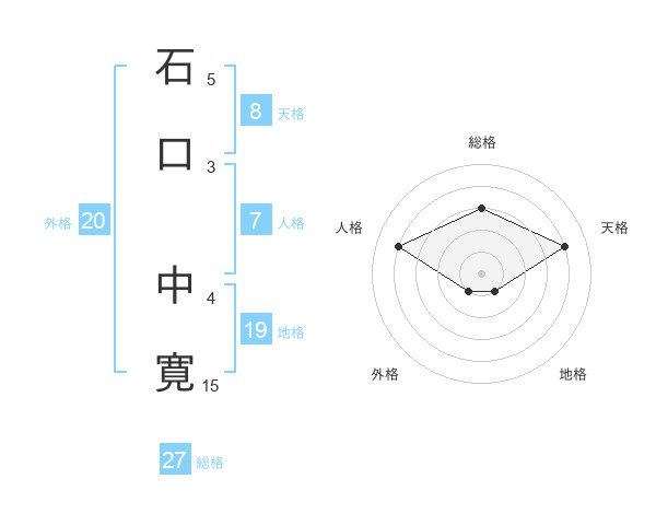 石口 中寛さんの総格は27画の3点!