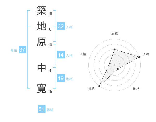 築地原 中寛さんの総格は51画の3点!