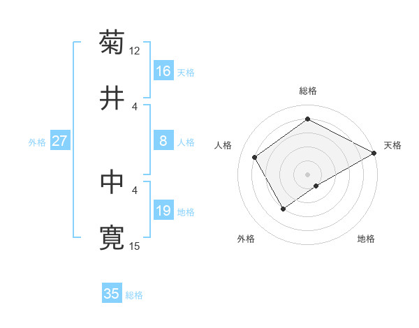 菊井 中寛さんの総格は35画の4点!