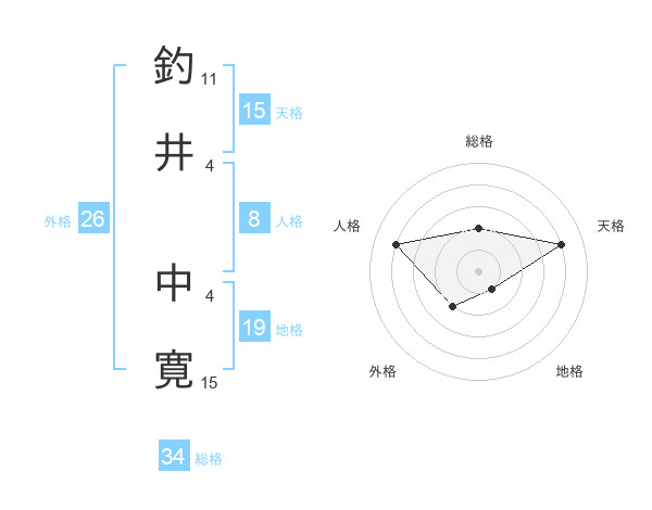 釣井 中寛さんの総格は34画の2点!