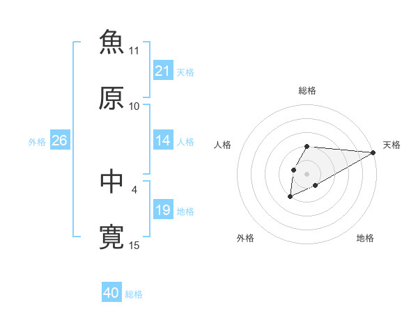魚原 中寛さんの天格は21画の5点!