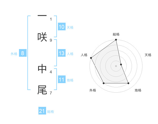 一咲 中尾さんを姓名の画数から五運を鑑定