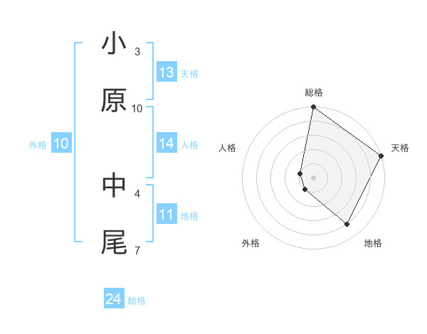 小原 中尾さんの総格は24画の5点!