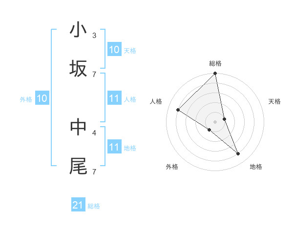 小坂 中尾さんを姓名の画数から五運を鑑定