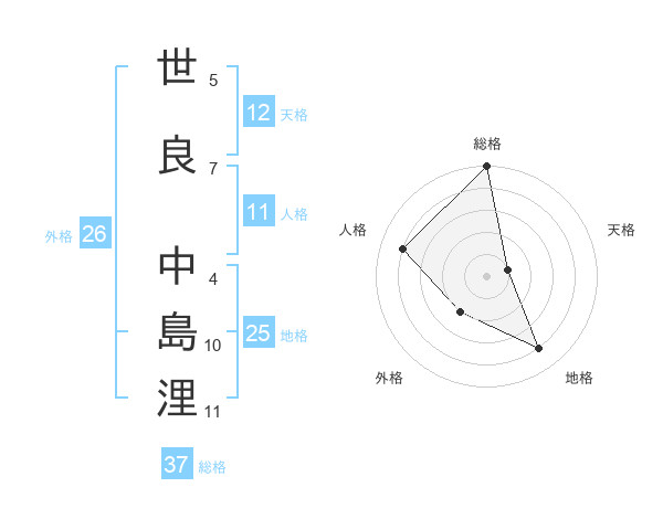 世良 中島浬さんの総格は37画の5点!