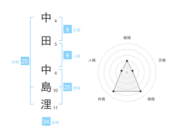 中田 中島浬さんを姓名の画数から五運を鑑定
