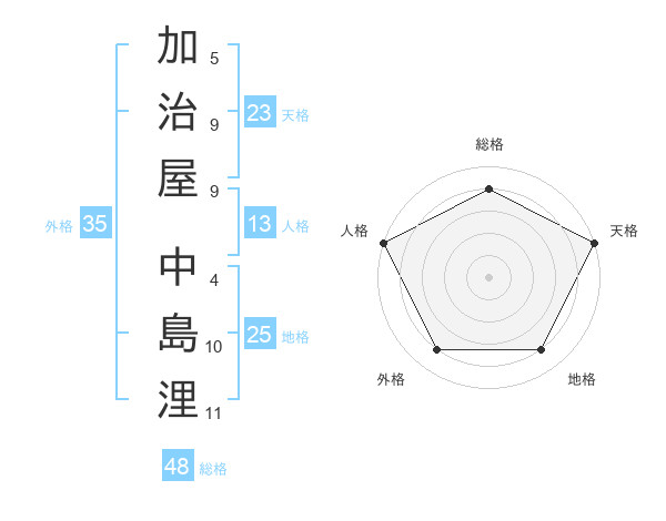 加治屋 中島浬さんを姓名の画数から五運を鑑定