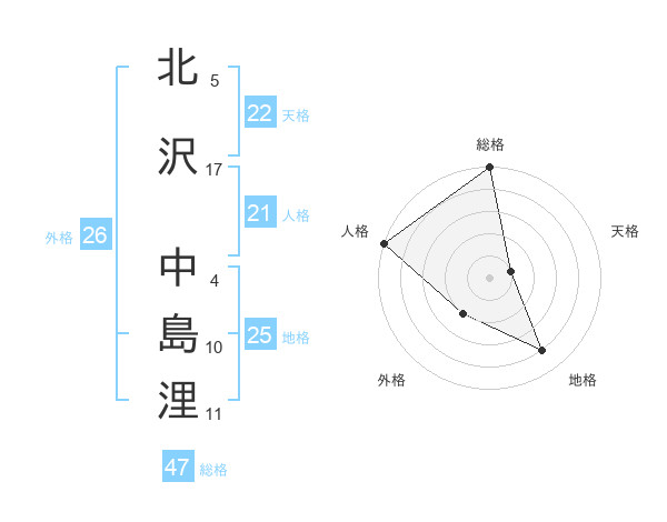 北沢 中島浬さんの総格は47画の5点!