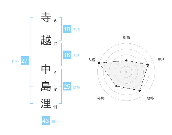寺越 中島浬さんを姓名の画数から五運を鑑定