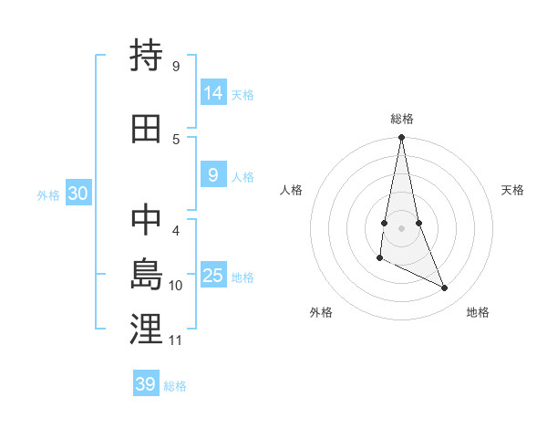 持田 中島浬さんを姓名の画数から五運を鑑定