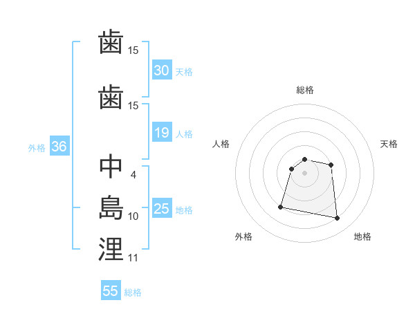 歯歯 中島浬さんの総格は55画の1点!