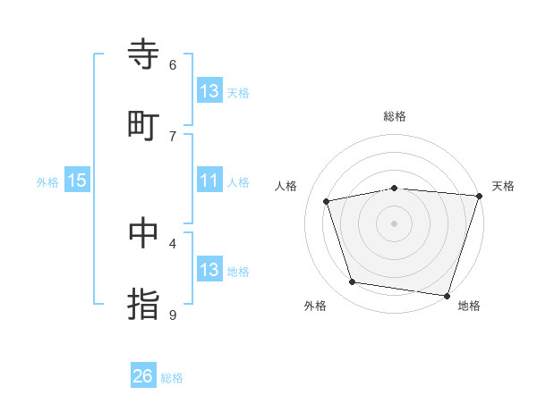 寺町 中指さんの総格は26画の2点!