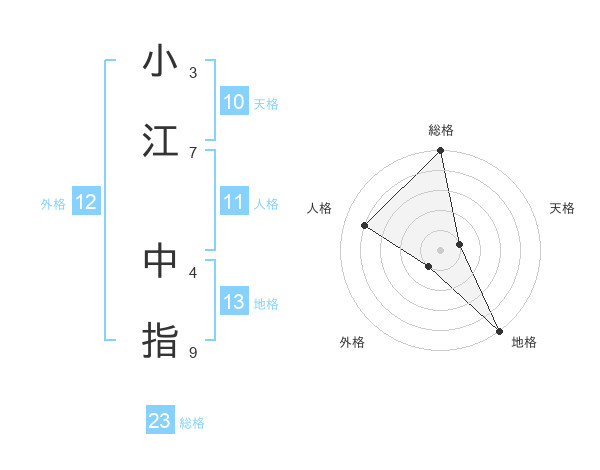 小江 中指さんの総格は23画の5点!