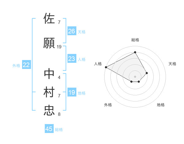 佐願 中村忠さんを姓名の画数から五運を鑑定