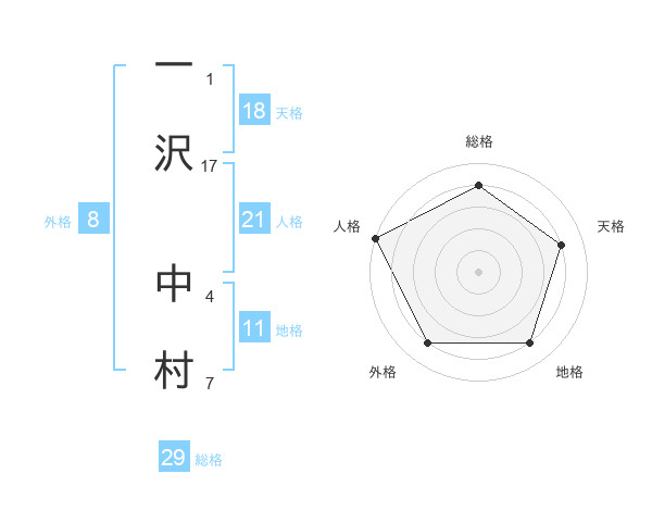 一沢 中村さんの総格は29画の4点!