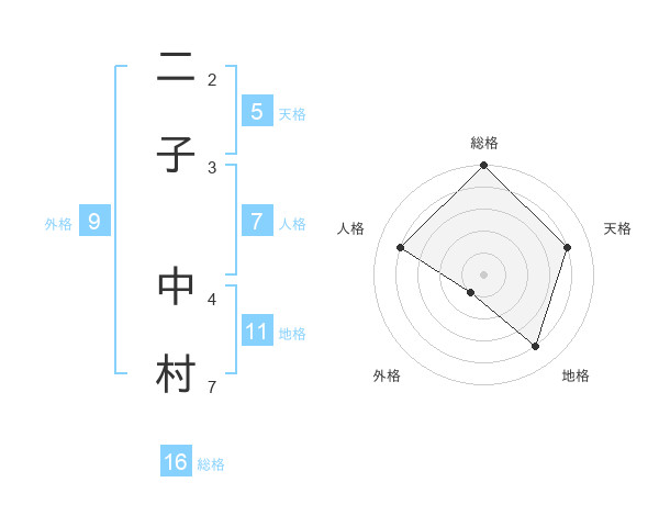 二子 中村さんの総格は16画の5点!