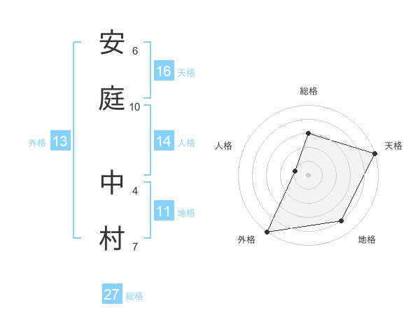 安庭 中村さんの外格は13画の5点!
