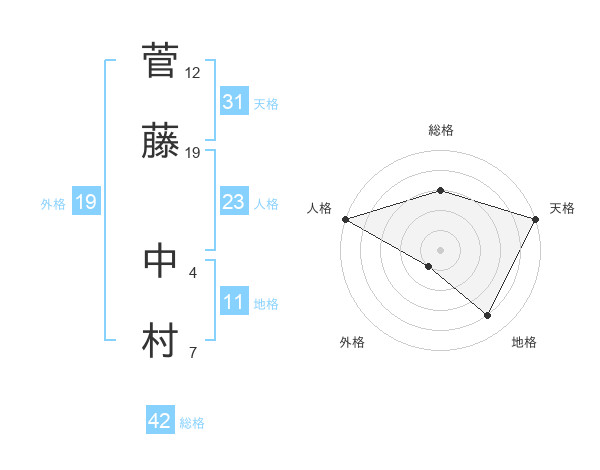 菅藤 中村さんの総格は42画の3点!