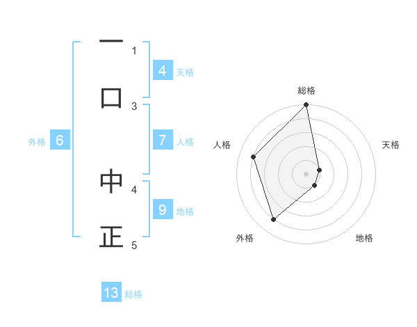 一口 中正さんの総格は13画の5点!