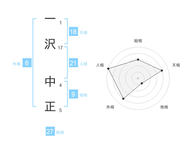 一沢 中正さんの人格は21画の5点!
