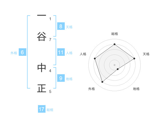 一谷 中正さんの総格は17画の4点!
