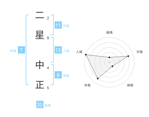 二星 中正さんの総格は20画の1点!