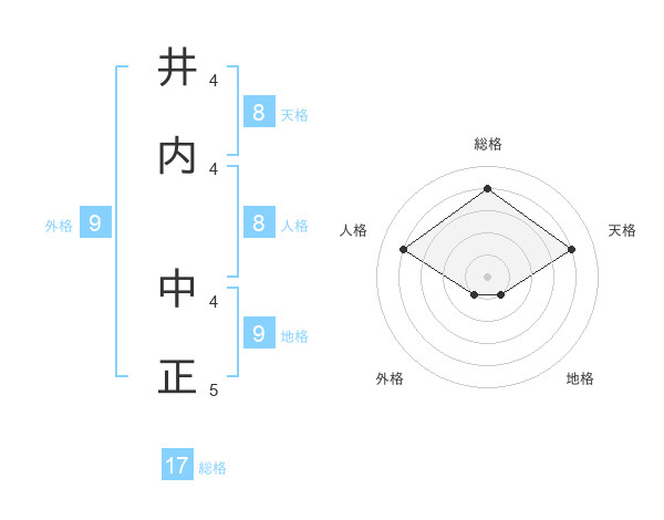 井内 中正さんの総格は17画の4点!