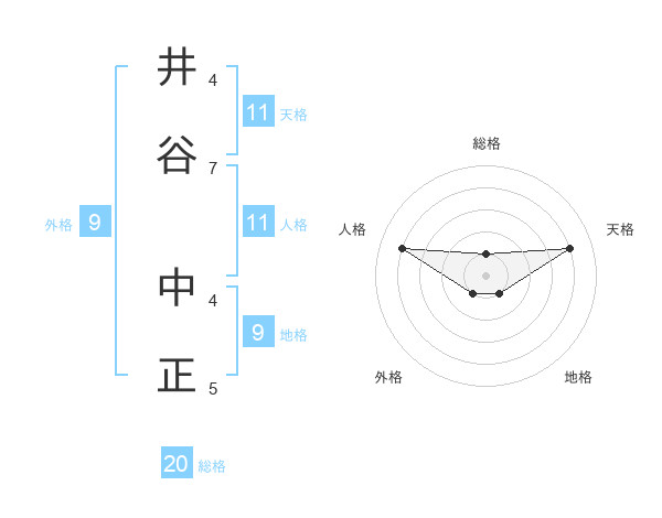井谷 中正さんの天格は11画の4点!