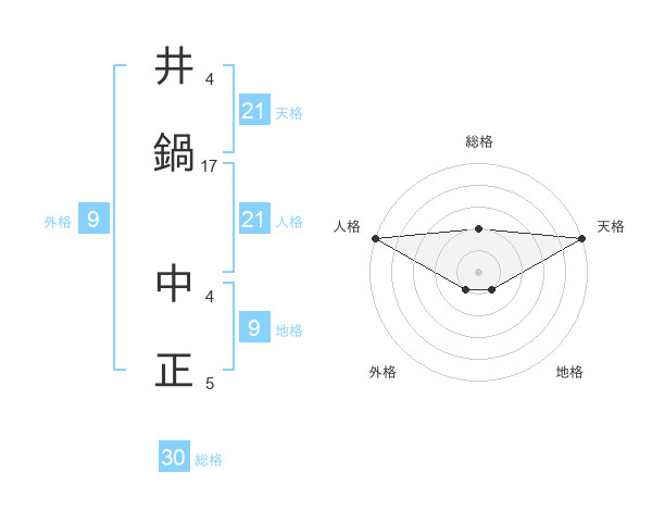 井鍋 中正さんを姓名の画数から五運を鑑定