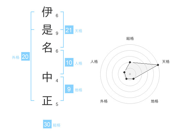 伊是名 中正さんの総格は30画の2点!