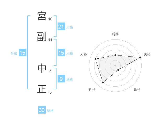 宮副 中正さんの総格は30画の2点!
