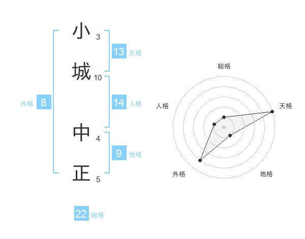 小城 中正さんの天格は13画の5点!