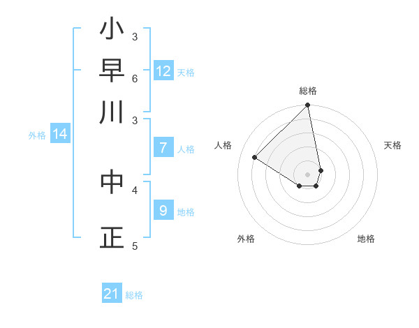 小早川 中正さんの総格は21画の5点!