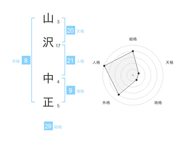 山沢 中正さんの総格は29画の4点!