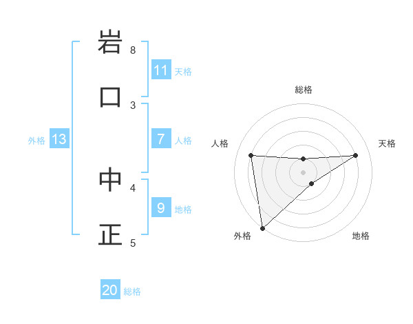 岩口 中正さんの総格は20画の1点!