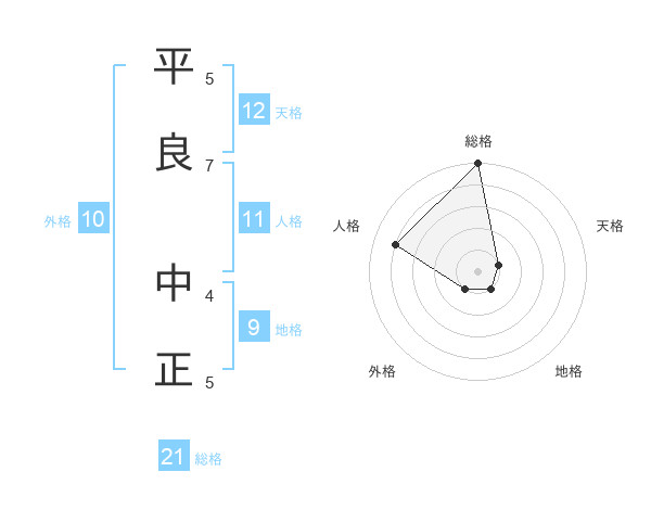 平良 中正さんの総格は21画の5点!