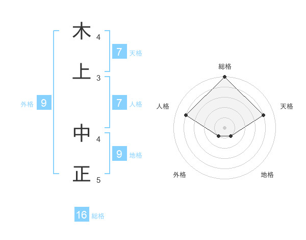 木上 中正さんの総格は16画の5点!
