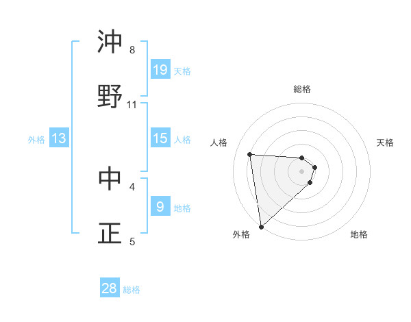 沖野 中正さんの外格は13画の5点!