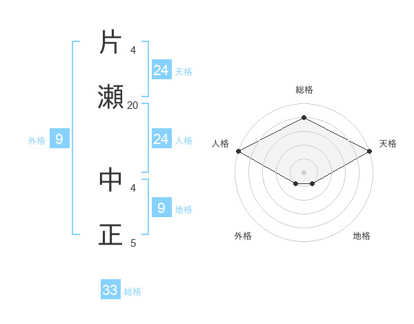 片瀬 中正さんの総格は33画の4点!