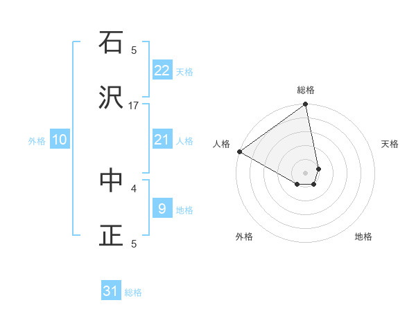 石沢 中正さんの総格は31画の5点!