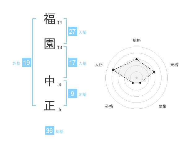 福園 中正さんの総格は36画の3点!