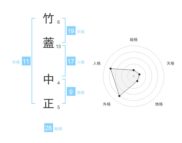 竹蓋 中正さんの総格は28画の1点!