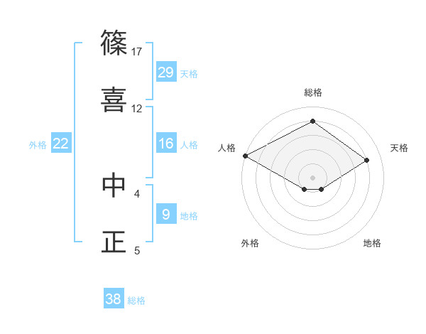 篠喜 中正さんの総格は38画の4点!