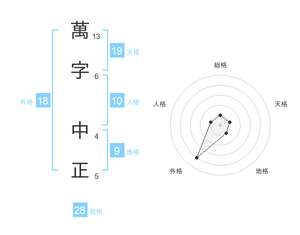 萬字 中正さんの天格は19画の1点!