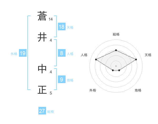 蒼井 中正さんの天格は18画の4点!