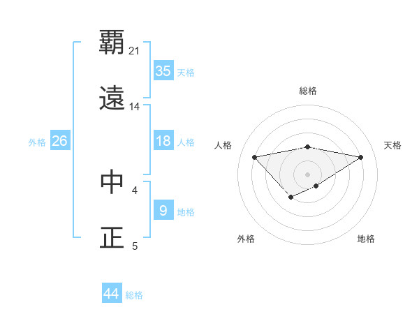 覇遠 中正さんの総格は44画の2点!