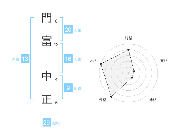 門富 中正さんの総格は29画の4点!