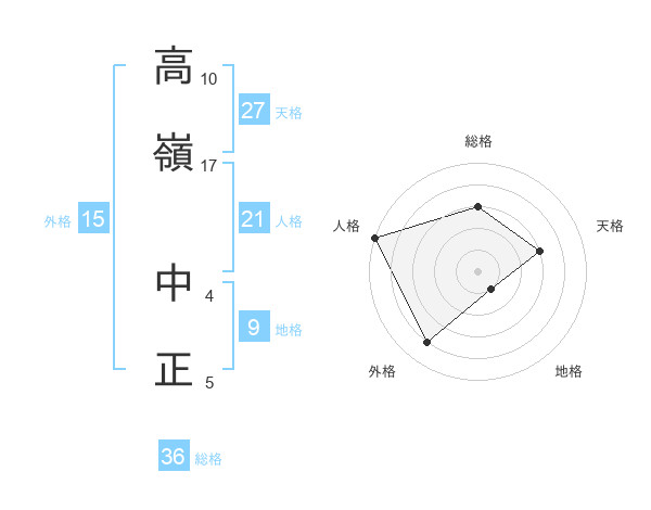 高嶺 中正さんの総格は36画の3点!