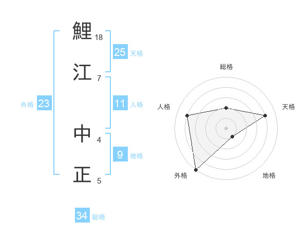 鯉江 中正さんを姓名の画数から五運を鑑定